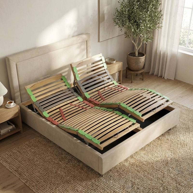 Questo sistema di riposo avanzato combina il massimo comfort di una rete elettrica a doghe con la praticità di un ampio vano contenitore salvaspazio. Il design elegante e la struttura robusta lo rendono la scelta ideale per chi cerca benessere e funzionalità in un unico prodotto.